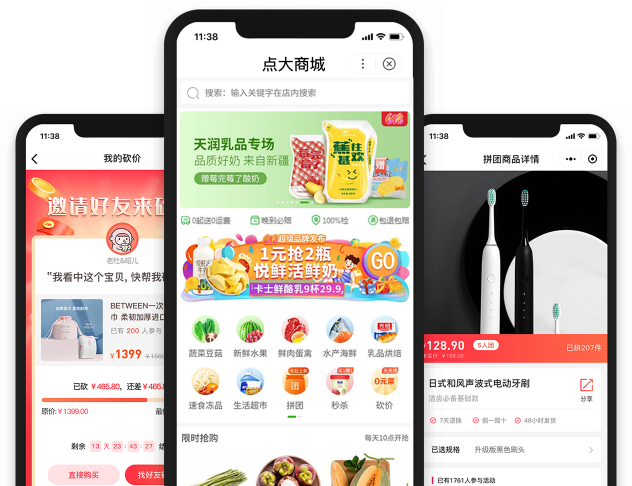 优惠券、充值赠送、拼团、秒杀、砍价、微信红包、抽奖活动等